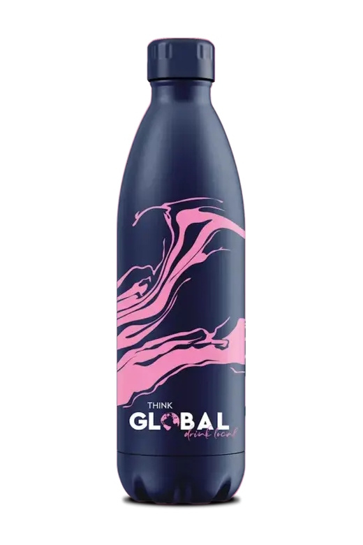 Minimalistyczne wzornictwo, trwałość i dbałość o środowisko czynią butelkę na wodę BWT świetnym wyborem dla osób aktywnych, świadomych i ceniących wygodę. Napis "Think Global Drink Local" podkreśla ideę ograniczenia zużycia plastiku oraz wybierania lokalnych, ekologicznych rozwiązań.