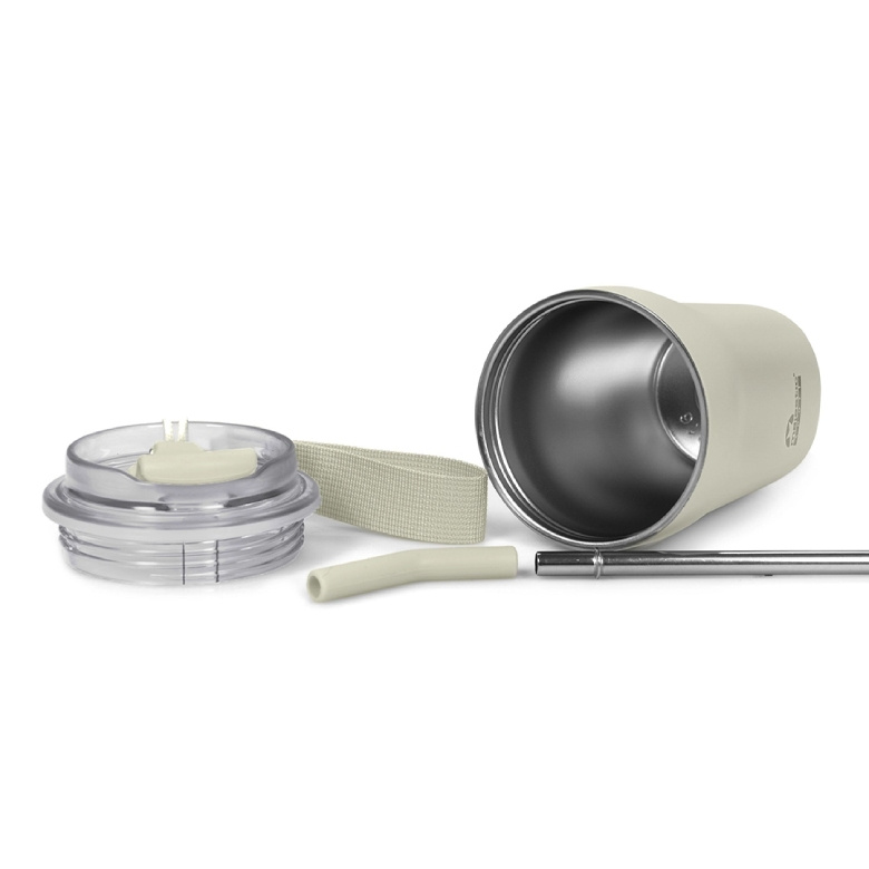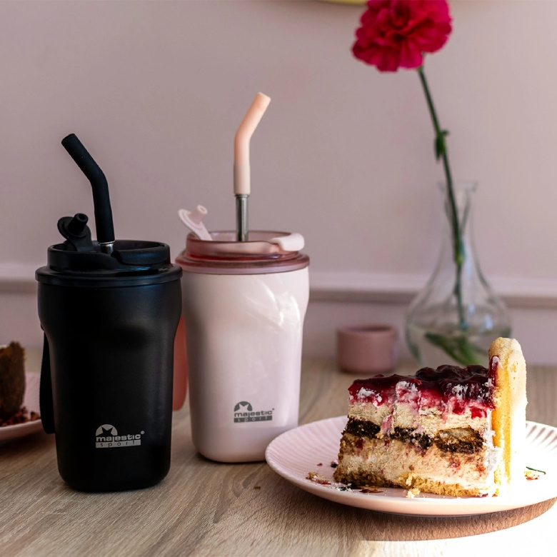 Innowacyjna zakrętka typu 3w1 pozwala na wygodne picie na trzy sposoby: przez słomkę ze stali nierdzewnej, przez ustnik lub bezpośrednio z otwartego kubka. Matowe wykończenie, poręczny pasek na nadgarstek i odporna na ślizganie podstawa zapewniają komfort użytkowania nawet w ruchu.