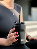 Innowacyjna zakrętka typu 3w1 pozwala na wygodne picie na trzy sposoby: przez słomkę ze stali nierdzewnej, przez ustnik lub bezpośrednio z otwartego kubka. Matowe wykończenie, poręczny pasek na nadgarstek i odporna na ślizganie podstawa zapewniają komfort użytkowania nawet w ruchu.