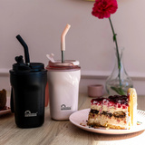 Kubek termiczny ze słomką Majestic Sport Hoody 420 ml - Czarny