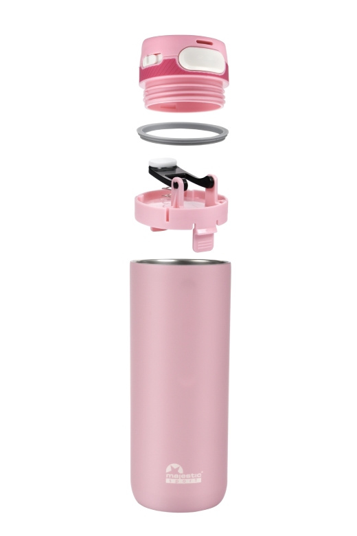 Różowy kubek termiczny Majestic Sport Nord został wykonany z wysokiej jakości stali nierdzewnej 18/8, która nie wpływa na smak napojów i zapewnia trwałość na lata. Podwójne ścianki z izolacją próżniową pozwalają utrzymać temperaturę napoju - gorącego nawet do 6 godzin, a zimnego do 12 godzin. Wygodny automatyczny korek one-click umożliwia obsługę jedną ręką, a dodatkowa blokada chroni przed przypadkowym otwarciem w torbie czy plecaku.