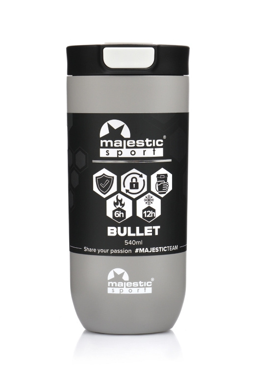 Majestic Sport Bullet to szczelny kubek termiczny w kolorze szarym o pojemności 540 ml, idealny towarzysz każdego dnia. Dzięki poręcznym wymiarom zmieści się w większości uchwytów samochodowych, idealnie sprawdzając się w aucie i podróży, ale również w pracy czy podczas codziennych aktywności.