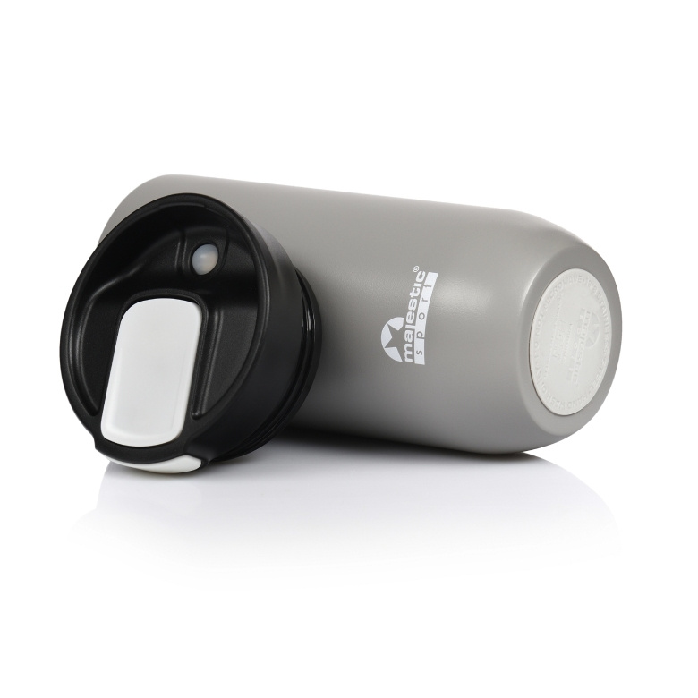 Kubek termiczny Majestic Sport Bullet został wykonany z wysokiej jakości stali nierdzewnej 18/8 i wyposażony w podwójne ścianki z izolacją próżniową, utrzymuje ciepło do 6 godzin i zimno nawet do 12 godzin. System one-click pozwala na wygodne otwieranie jedną ręką, a antypoślizgowa podstawa zapewnia stabilność na gładkich powierzchniach.
