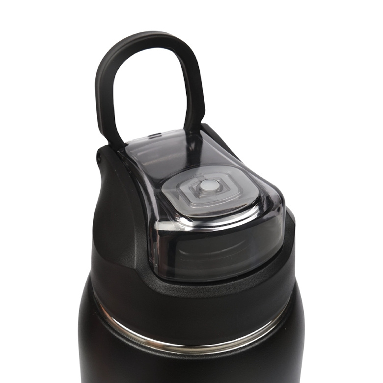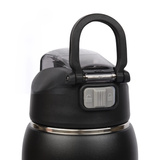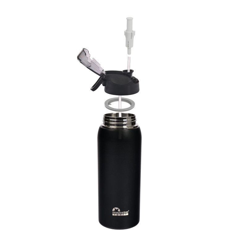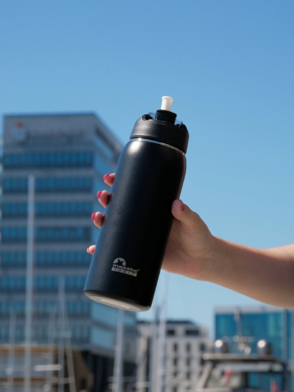 Czarna butelka termiczna Majestic Sport Delta posiada wbudowaną blokadę zamknięcia, która chroni przed przypadkowym otwarciem oraz składany uchwyt ułatwiający przenoszenie. Wszystkie elementy zostały zaprojektowane z myślą o łatwym czyszczeniu i pełnej higienie. Rurkę można wyjąć, butelki jednak nie należy myć w zmywarce.