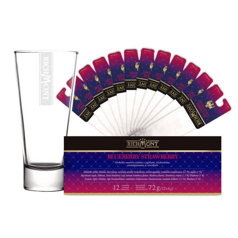 ZESTAW RICHMONT BLUEBERRY STRAWBERRYOWOCOWA HERBATA + SZKLANKA ICE