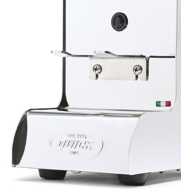 Młynek wyposażony jest w płaskie stalowe żarna o średnicy 43 mm, które zapewniają wyjątkowo równomierne mielenie ziaren – kluczowe dla uzyskania doskonałego espresso. Quick Mill Apollo umożliwia pracę w trybie manualnym, automatycznym lub programowanym, dając użytkownikowi pełną kontrolę nad procesem mielenia. Mielenie odbywa się bezpośrednio do portafiltra, który można oprzeć o wbudowany uchwyt.