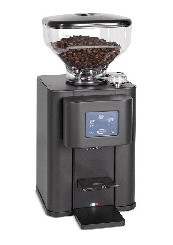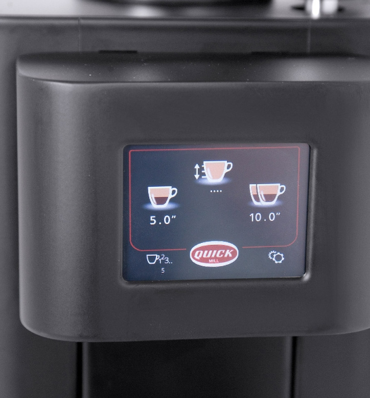 Model wyposażony jest w 2-calowy dotykowy ekran, który umożliwia szybkie programowanie dozy: pojedynczej, podwójnej lub ciągła doza. Dzięki temu użytkownik ma pełną kontrolę nad czasem i ilością mielenia, co ułatwia powtarzalność i dopasowanie do własnych preferencji.