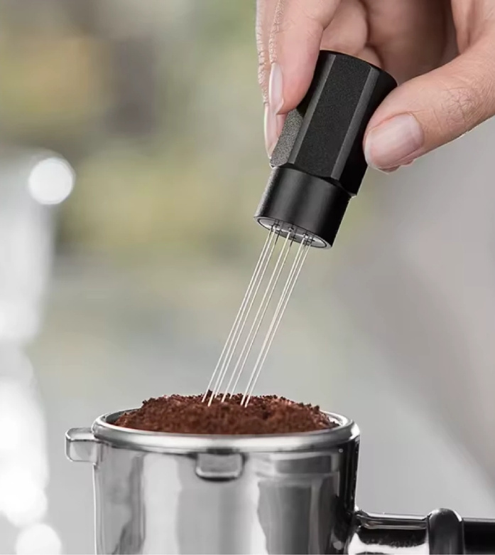 AVX HA003 to precyzyjne narzędzie WDT zaprojektowane z myślą o poprawie jakości espresso poprzez dokładne rozmieszczenie zmielonej kawy w sitku. Wykorzystuje cienkie igły o grubości 0,4 mm, które rozbijają grudki i zapewniają równomierną dystrybucję przed ubiciem.