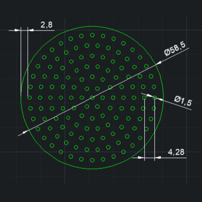 Grubość 0,8 mm zapewnia odpowiednią sztywność i trwałość, a zarazem pozostaje na tyle cienkie, by nie zaburzać przepływu wody. Sitko umieszcza się bezpośrednio na ubitym krążku kawy w portafiltrze, co pozwala zminimalizować kanałowanie i poprawić smak espresso.