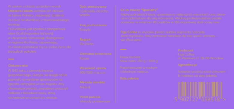 KAWA ZIARNISTA FIGA COFFEE BRAZYLIA MONTEIRO LOBATO NATURAL FILTR 250G