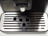 Ekspres posiada znaczne rysy widoczne na zdjęciach na następujących elementach: taca ociekowa, wyświetlacz, góra, front i tył obudowy, obudowa nad wyświetlaczem, zbiornik na wodę, zbiornik na kawę.