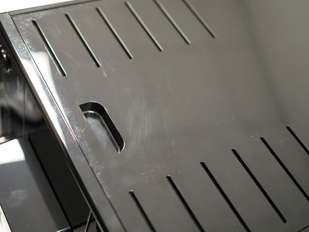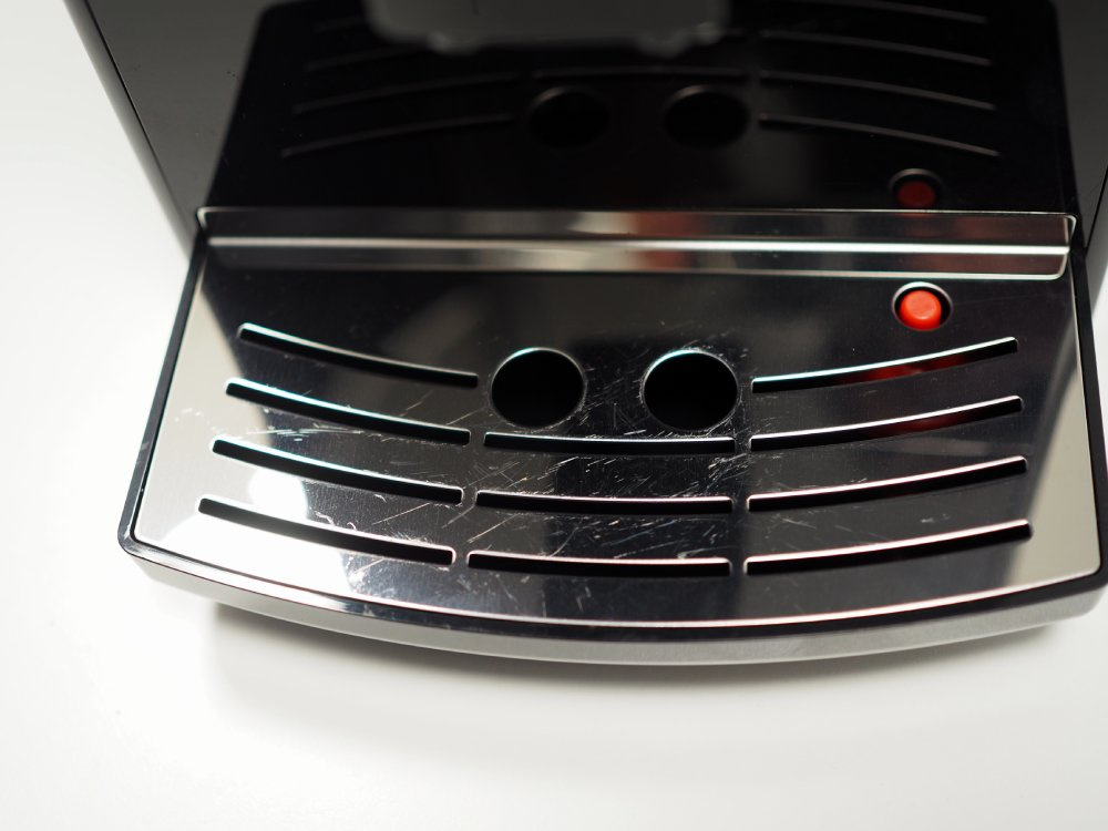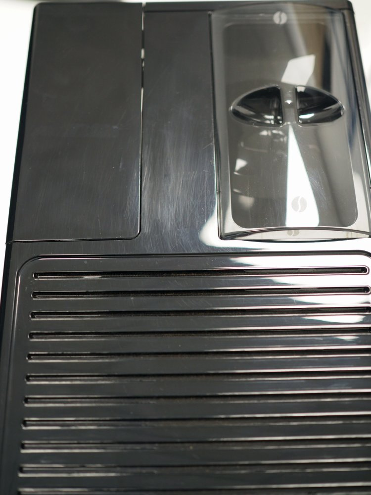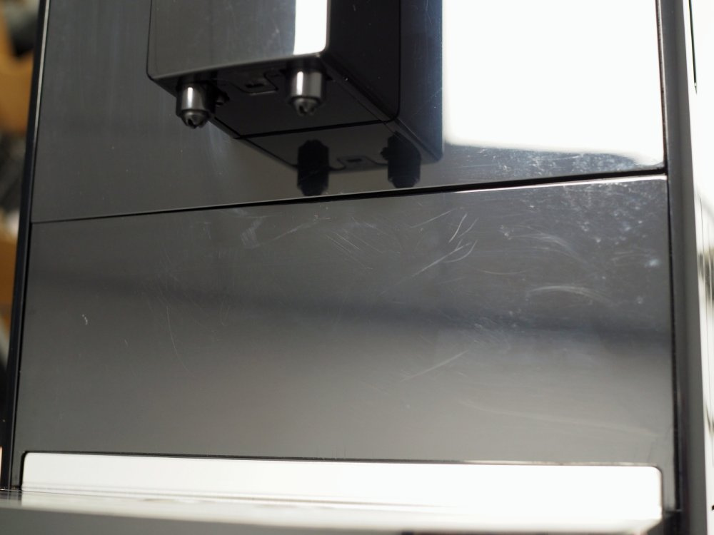 Ekspres posiada znaczne rysy widoczne na zdjęciach na następujących elementach: wyświetlacz, góra, boki, front i tył obudowy, taca ociekowa.