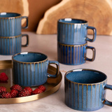 ZESTAW - Filiżanki Altom Design New Bone China Reactive Stripes 220 ml - Granatowe - 6 sztuk