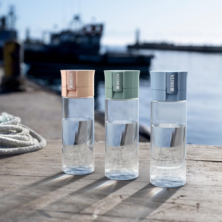 Zabierz świeżą, przefiltrowaną wodę gdziekolwiek jesteś. Butelka BRITA Vital filtruje wodę bezpośrednio podczas picia. Dzięki technologii MicroDisc Pure-Taste poprawia smak, ogranicza chlor i niektóre mikrozanieczyszczenia, a jednocześnie zachowuje cenne minerały (Ca, Mg).