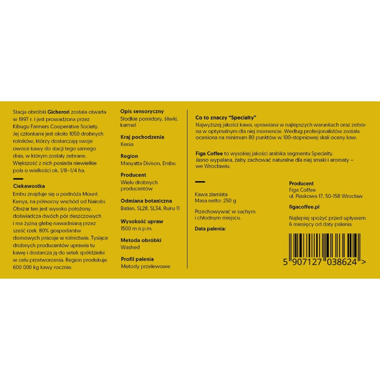 KAWA ZIARNISTA FIGA COFFEE KENIA GICHERORI AA WASHED FILTR 250G