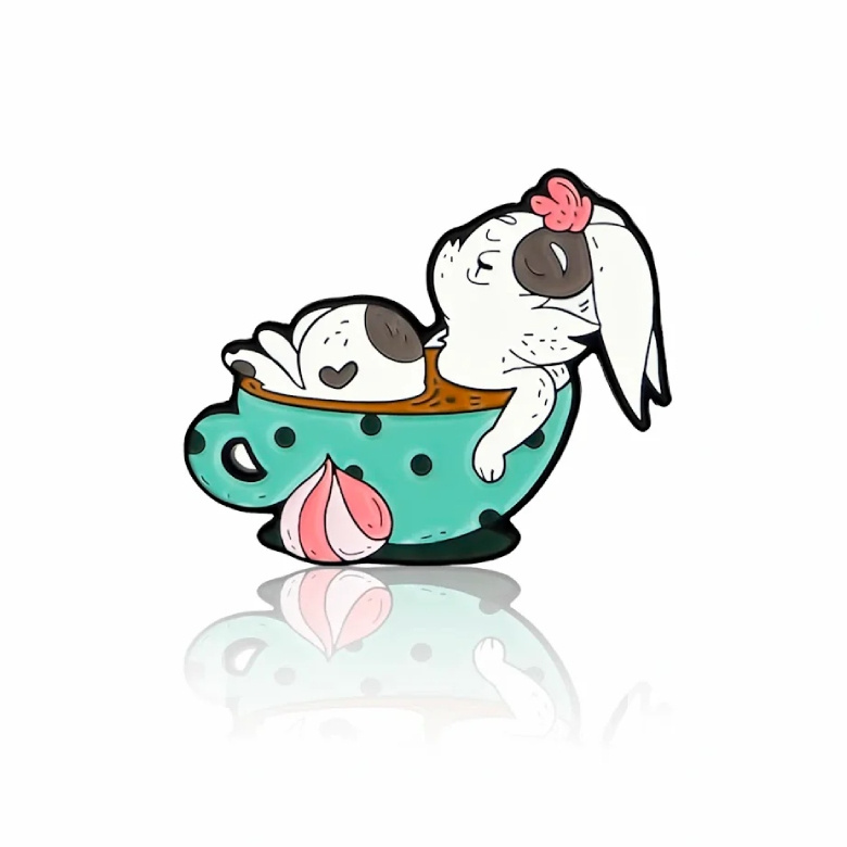 Króliczek w filiżance kawy to pozytywna przypinka z motywem słodkiego króliczka z kawą. Ta przypinka wykonana jest z dbałością o detale – żywe kolory i precyzyjny nadruk sprawiają, że będzie trwałym elementem ozdobnym, który ożywi każdą stylizację.