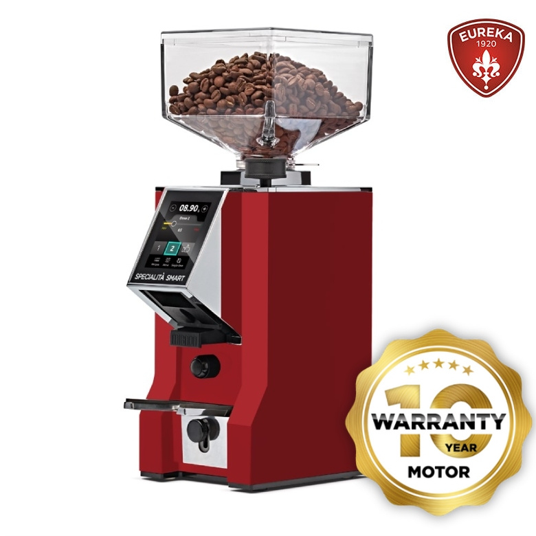 Przedstawiamy ulepszoną wersję kultowego młynka Eureka Mignon Specialita. Eureka Mignon Specialita SMART to kompaktowy i uniwersalny młynek do kawy w kolorze czerwonym, który mieli idealnie od espresso po metody przelewowe. Wyposażony w 55-mm płaskie żarna z hartowanej stali oraz nowy, kolorowy wyświetlacz z mozliwością zapisania przepisów, trybem single dose, podwójnej dozy, trybem ciągłym oraz Extra dose.