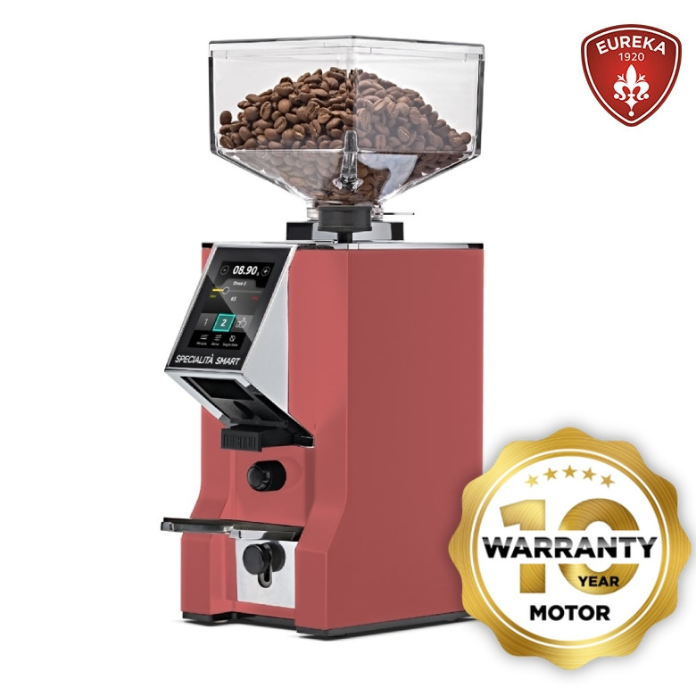 Przedstawiamy ulepszoną wersję kultowego młynka Eureka Mignon Specialita. Eureka Mignon Specialita SMART to kompaktowy i uniwersalny młynek do kawy w kolorze terakoty, który mieli idealnie od espresso po metody przelewowe. Wyposażony w 55-mm płaskie żarna z hartowanej stali oraz nowy, kolorowy wyświetlacz z mozliwością zapisania przepisów, trybem single dose, podwójnej dozy, trybem ciągłym oraz Extra dose.