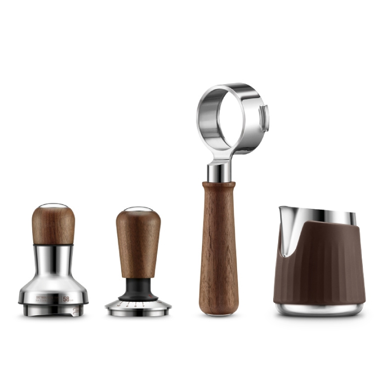 Trwała stal nierdzewna i drewno orzechowe gwarantują solidność, stabilne prowadzenie i przyjemny, naturalny chwyt. Pasuje do estetyki serii Craft i świetnie komponuje się z kolbą i tamperem.