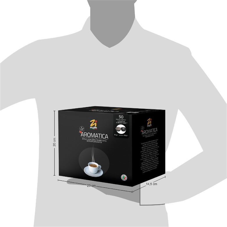 Wyśmienita kawa z prestiżowej włoskiej palarni Zicaffe. Aromatica to kompozycja najlepszych ziaren arabiki z dodatkiem wysokiej klasy indonezyjskiej robusty. Jest to propozycja dla wymagającego klienta, który ceni bardzo aromatyczną i gustowną kawę przez cały dzień. Opakowanie zawiera 50 kapsułek przeznaczonych do systemu Lavazza A Modo Mio.