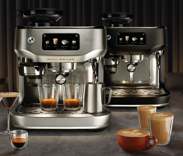 Sage SES995BSS wyposażono w dwa bojlery wykonane ze stali nierdzewnej o pojemności 0,5 i 0,7 litra, które zapewniają jednoczesne parzenie kawy i spienianie mleka. Regulacja temperatury PID utrzymuje temperaturę z dokładnością do 1°C w zakresie 85-95°C, które wraz z optymalnym ciśnieniem 9 barów, espresso wychodzi powtarzalne, z bogatą cremą oraz pełne smaku.