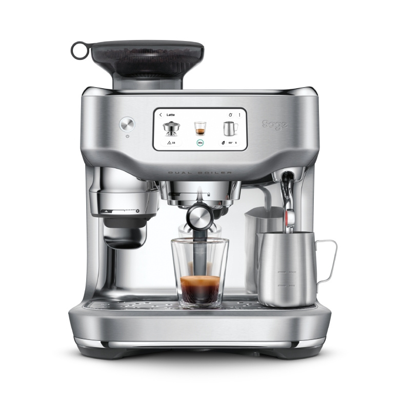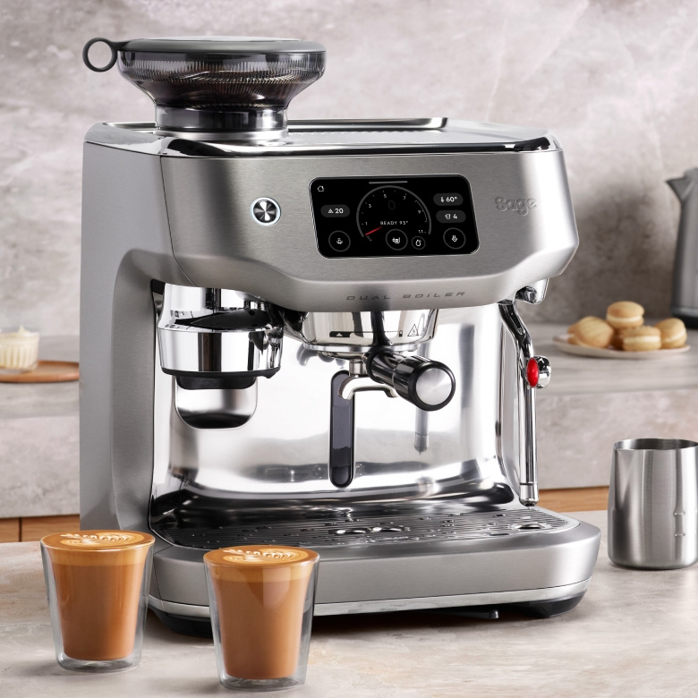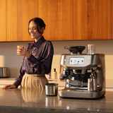 Dzięki nowej, elektronicznej regulacji mielenia Sage Oracle Dual Boiler mieli, dozuje i ubija kawę za Ciebie. W pełni zintegrowany młynek z precyzyjnymi żarnami Baratza® oferuje 45 ustawień, a stalowy portafilter 58 mm i 22 g dozy dają espresso niczym z kawiarni.