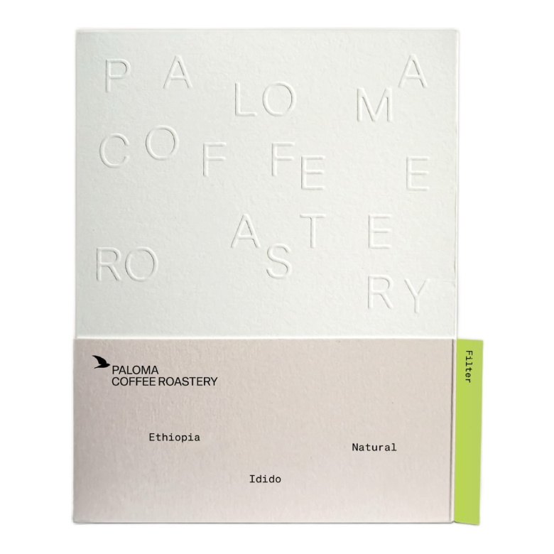 Etiopia Idido to jasno palona arabika jakości specialty z Etiopii przeznaczona do przelewowych metod parzenia. Jej ziarna odmian Kurume, Dega oraz innych lokalnych gatunków Heirloom uprawiane są na wysokościach 2100-2300 m n.p.m. w regionie Yirgacheffe. Kawa została poddana obróbce metodą natural, a w teście jakości uzyskała 86,75 punktów SCA.