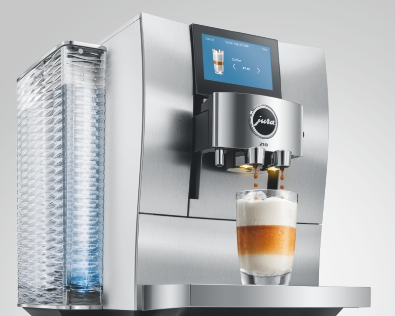Ekspres JURA Z10 to połączenie radości z użytkowania i perfekcji klasycznego designu. Urządzenie wyróżnia się najwyższą jakością wykonania, ponadczasową elegancją oraz pełną funkcjonalnością, która spełni oczekiwania nawet najbardziej wymagających miłośników kawy. Jego subtelnie falista linia podkreśla kształt zbiornika na wodę, a wypukło-wklęsły front nadaje konstrukcji wyjątkową lekkość i nowoczesny charakter. Delikatnie zakrzywiony panel sterowania zachęca do interakcji, a tacka na filiżanki tworzy efektowną scenę dla przygotowywanych specjałów. Kolorowy ekran o przekątnej 4,3 cala, ustawiony pod idealnym kątem, gwarantuje doskonałą czytelność i intuicyjną obsługę, umożliwiając odkrywanie różnych wymiarów kawowej przyjemności. Każdy detal Z10 zdradza pasję do doskonałego wzornictwa i dbałość o estetykę w najdrobniejszych szczegółach.