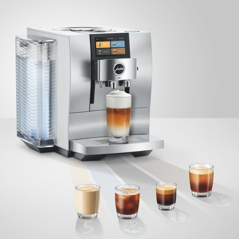 Z10 to hołd dla różnorodności kawowego świata, a jego druga generacja zachwyca jeszcze większym wyborem napojów. JURA Z10 Aluminum White (EB) z mistrzowską precyzją porusza się w czterech obszarach kawowych doznań – gorącym, zimnym, lekkim i słodkim – tworząc harmonijną kompozycję intensywnych, owocowych, delikatnych i subtelnie słodkich aromatów.