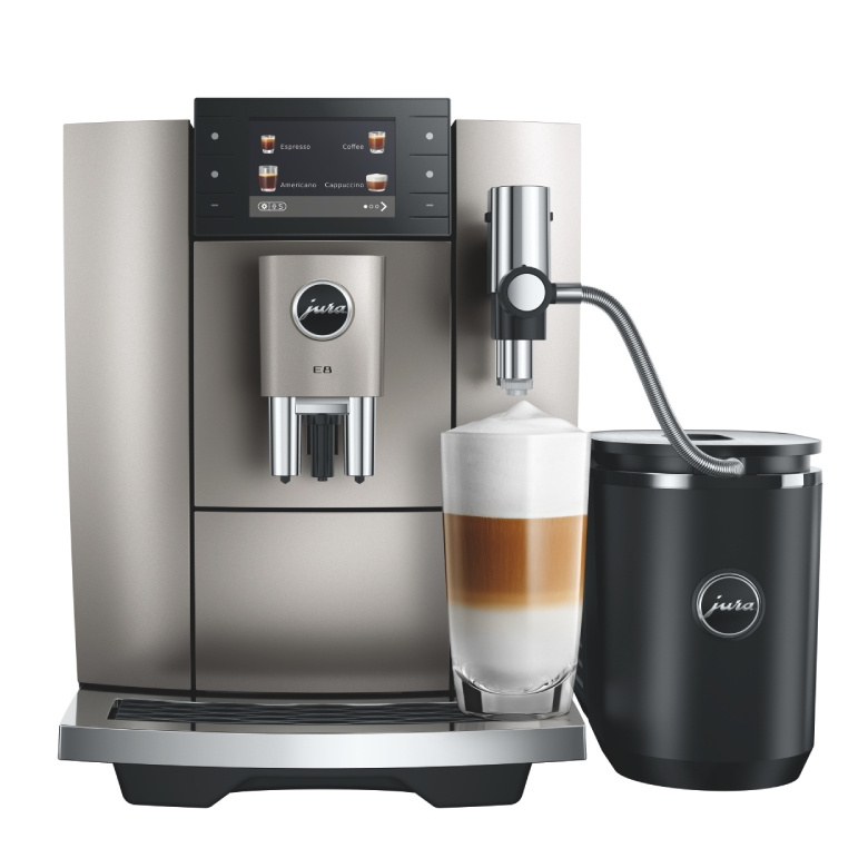 Model E8 zachwyca elegancją i kompaktową formą – przy szerokości zaledwie 27 cm doskonale wpisuje się nawet w mniejsze przestrzenie, wyróżniając się zarówno wyrafinowanym wzornictwem, jak i doskonałymi doznaniami smakowymi każdej przygotowanej kawy.