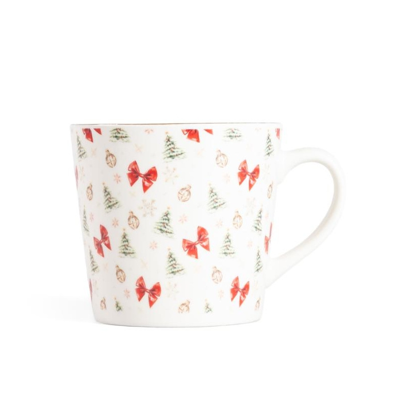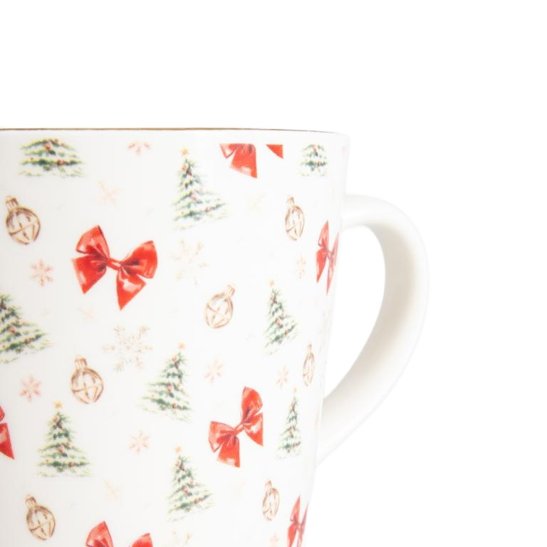 Pojemność 510 ml sprawia, że zmieści się w nim solidna porcja herbaty, kawy lub kakao. Gładka porcelana przyjemnie leży w dłoni, a wygodne ucho ułatwia trzymanie. To świetny wybór na prezent i codzienne, świąteczne rytuały.