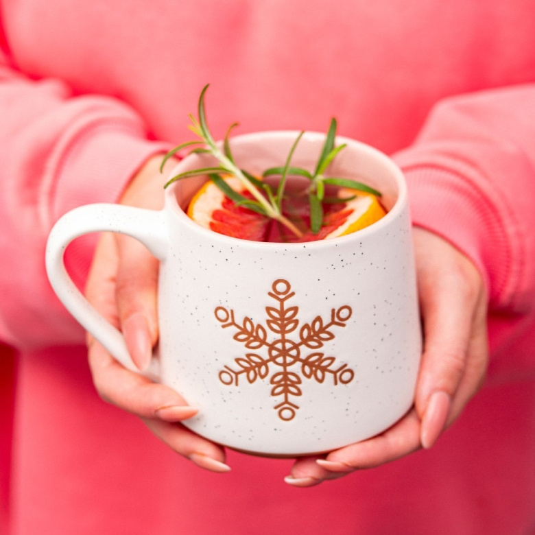 Dzięki większej pojemności kubek doskonale sprawdzi się do aromatycznej kawy, rozgrzewającej herbaty czy gorącej czekolady. Wygodne ucho i delikatnie zaokrąglony kształt zapewniają komfort użytkowania, a elegancki design sprawia, że kubek pięknie prezentuje się na świątecznym stole lub w zestawie prezentowym.