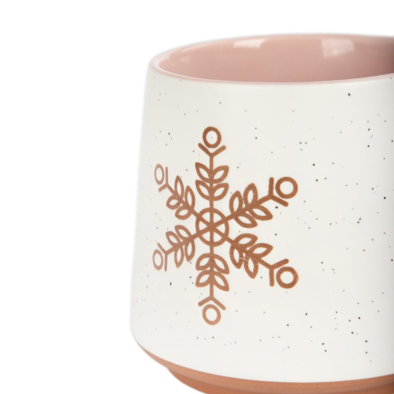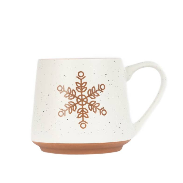 HOMLA COMBES to elegancki, porcelanowy kubek o dużej pojemności 600 ml, idealny na chłodne zimowe dni. Subtelny, złoty motyw śnieżynki na kremowym tle wprowadza do wnętrza ciepły, świąteczny nastrój, dodając uroku każdej chwili spędzonej z gorącym napojem.