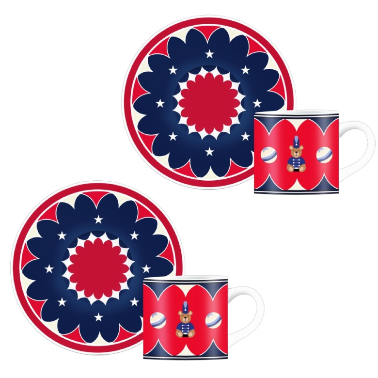 Limitowany komplet dwóch filiżanek ze spodkami od Bialetti, wykonany z grubej porcelany i przeznaczony do espresso o pojemności 80 ml. Świąteczny, czerwono-granatowy motyw inspirowany klasycznymi zabawkami dodaje serwowaniu kawy radosnego, zimowego charakteru. Idealny na prezent dla miłośników włoskiego designu.