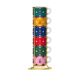 Świąteczny zestaw sześciu porcelanowych filiżanek od Bialetti, przeznaczony do espresso o pojemności 80 ml. Każda filiżanka ma inny kolor i unikalny wzór inspirowany klasycznymi zabawkami - symbolami radości i magii Bożego Narodzenia. Filiżanki można przechowywać w elegancki sposób jedna na drugiej na złotym metalowym stojaku, który dołączony jest do zestawu.