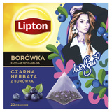Lipton z borówką to aromatyzowana herbata czarna z kawałkami owoców, a w tym słodkiej jagody, czarnej porzeczki i żurawiny. Ta herbata z pewnością wprowadzi Cię w dobry nastrój. Herbata ma charakteryzuje się łagodnym, subtelnym, słodkim smakiem i wspaniałym aromatem. Opakowanie zawiera 20 biodegradowalnych torebek w kształcie piramidek, dzięki czemu herbata ma dużo miejsca na uwolnienie swojego smaku i aromatu.