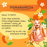 Lipton z pomarańczą to aromatyzowana herbata czarna ze skórką pomarańczy. Ta herbata z pewnością wprowadzi Cię w dobry nastrój. Herbata ma charakteryzuje się świeżym, cytrusowym smakiem pomarańczy i wspaniałym aromatem. Opakowanie zawiera 20 biodegradowalnych torebek w kształcie piramidek, dzięki czemu herbata ma dużo miejsca na uwolnienie swojego smaku i aromatu.