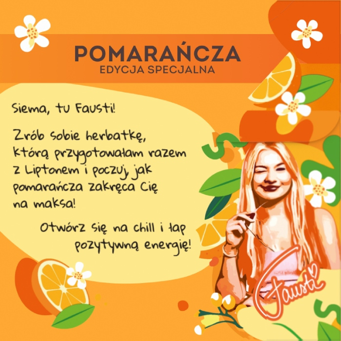 Siema, tu Fausti! Zrób sobie herbatkę, którą przygotowałam razem z Liptonem i poczuj, jak pomarańcza zakręca Cię na maksa! Otwórz się na chill i łap pozytywną energię!