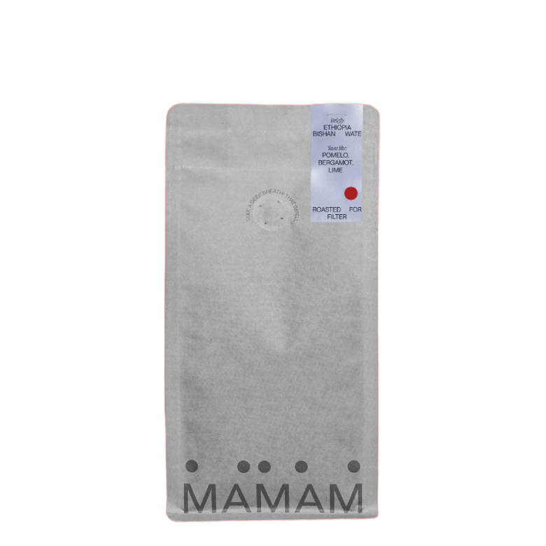MAMAM Ethiopia Bishan Wate to jasno palona arabika z Etiopii przeznaczona do metod przelewowych. Jej ziarna uprawiane są na wysokości 2200 m n.p.m. w regionie Hambela Wamena (Guji). Kawa przeszła obróbkę metodą Washed.