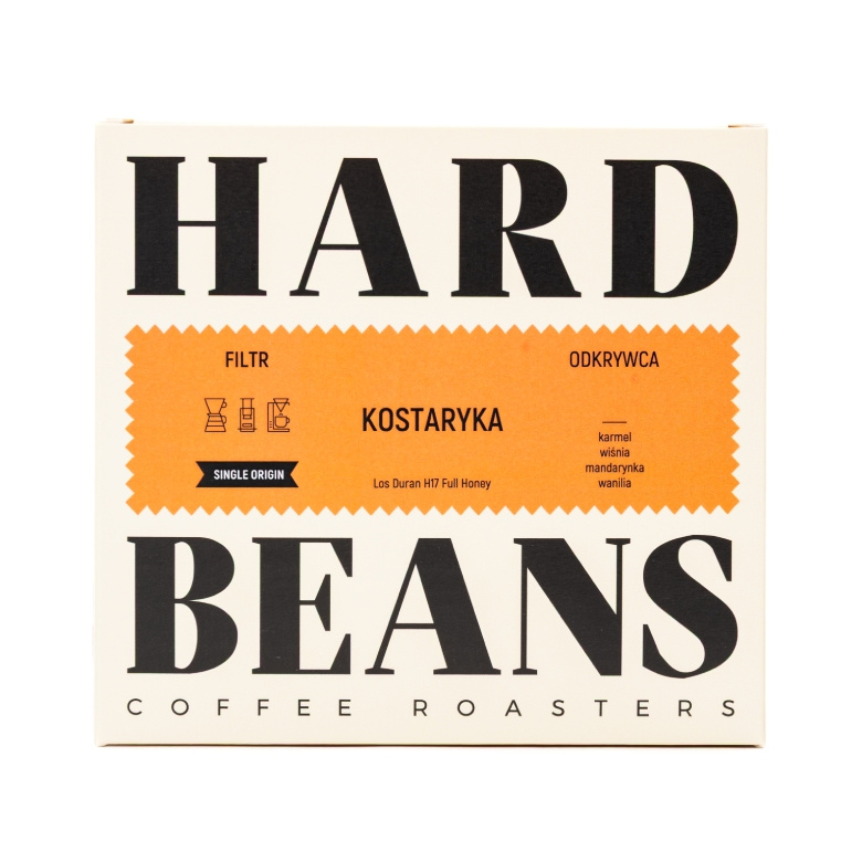 Hard Beans Kostaryka Los Duran H17 to jasno palona arabika Single Origin z Kostaryki przeznaczona do przelewowych metod parzenia. Jej ziarna odmiany H17 uprawiane są na wysokości 1650 m n.p.m. w regionie West Valley. Kawa została poddana obróbce metodą Full Honey.