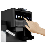 Za doskonały rezultat odpowiada pompa o ciśnieniu 20 bar oraz wbudowany zintegrowany, stożkowy młynek ze stali nierdzewnej z ośmioma stopniami regulacji grubości mielenia. Kremową piankę do cappuccino i latte przygotujesz przy pomocy spieniacza do mleka, a obsługa przez elegancki panel dotykowy jest szybka i intuicyjna. Całość zamknięto w kompaktowej obudowie, która świetnie wpasuje się w każdą kuchnię.