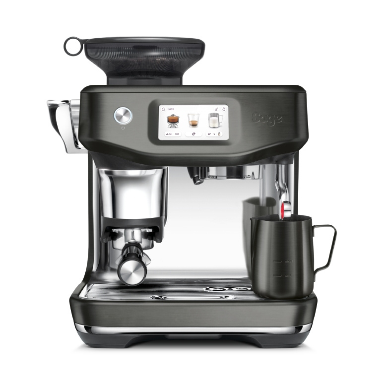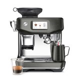SAGE The Barista Touch Impress SES882BST to profesjonalny ekspres kolbowy w kolorze czarnym, który łączy intuicyjny ekran dotykowy, automatyczne spienianie Auto MilQ™ i system Impress™ Puck, żeby w domu przygotować kawę jak w kawiarni. Szczotkowana stal korpusu z detalami ze stali nierdzewnej nadaje całości nowoczesny charakter. Solidna kolba 54 mm ze stali, metalowa dysza pary i precyzyjna dźwignia systemu Impress Puck podkreślają wysoką jakość wykonania.