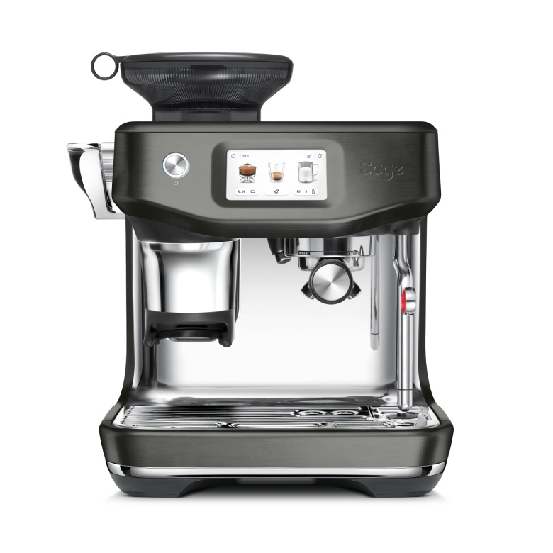 SAGE The Barista Touch Impress SES882BST to profesjonalny ekspres kolbowy w kolorze czarnym, który łączy intuicyjny ekran dotykowy, automatyczne spienianie Auto MilQ™ i system Impress™ Puck, żeby w domu przygotować kawę jak w kawiarni. Szczotkowana stal korpusu z detalami ze stali nierdzewnej nadaje całości nowoczesny charakter. Solidna kolba 54 mm ze stali, metalowa dysza pary i precyzyjna dźwignia systemu Impress Puck podkreślają wysoką jakość wykonania.