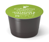 Tchibo Cafissimo Espresso Pistachio & Chocolate to wyjątkowa kawa w kapsułkach przeznaczonych to przygotowania w ekspresach Tchibo Cafissimo. Jest to zrównoważone espresso o pysznym smaku czekolady połączonym z delikatnie orzechowymi nutami pistacji. Każda kapsułka kryje aromatyczną mieszankę starannie wyselekcjonowanych ziaren arabiki, która pozwala cieszyć się wyjątkowym smakiem w zaciszu własnego domu - za naciśnięciem jednego przycisku.