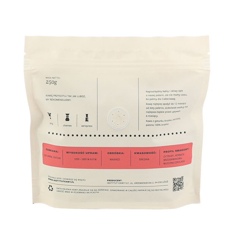 Instytut Kawy Wenezuela Santa Cruz to kawa jakości specialty, która doskonale sprawdzi się w alternatywnych metodach parzenia takich jak drip, Chemex czy AeroPress.