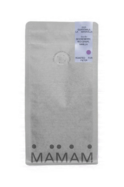 MAMAM Gwatemala La Maravilla to jasno palona arabika specialty z górzystego regionu Huehuetenango w Gwatemali. Ziarna pochodzą z farmy Finca La Maravilla, prowadzonej przez Mauricio Rosalesa, i rosną na wysokości 1500–1850 m n.p.m.. Odmiana Bourbon poddana została obróbce washed, dzięki czemu napar jest czysty, przejrzysty i pełen eleganckiej owocowości.