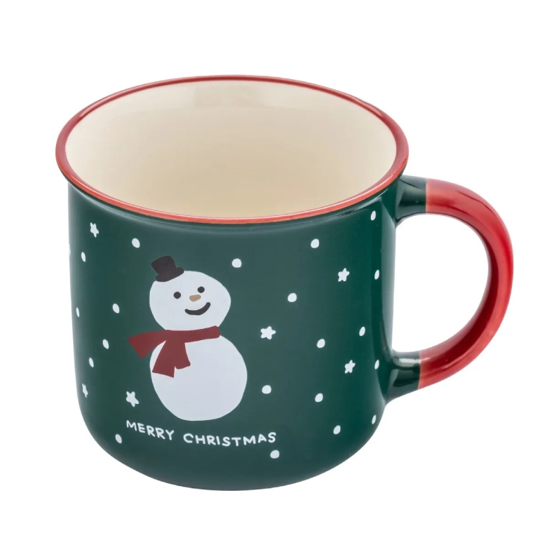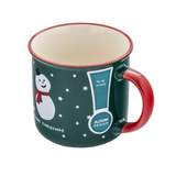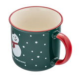 Świąteczny kubek Altom Design z motywem uśmiechniętego bałwanka wprowadzi do Twojego domu ciepły, bożonarodzeniowy klimat. Ciemnozielone ścianki ozdobione są białymi gwiazdkami i napisem "Merry Christmas", a czerwone ucho oraz wywinięty rant dodają całości przytulnego, zimowego charakteru.
