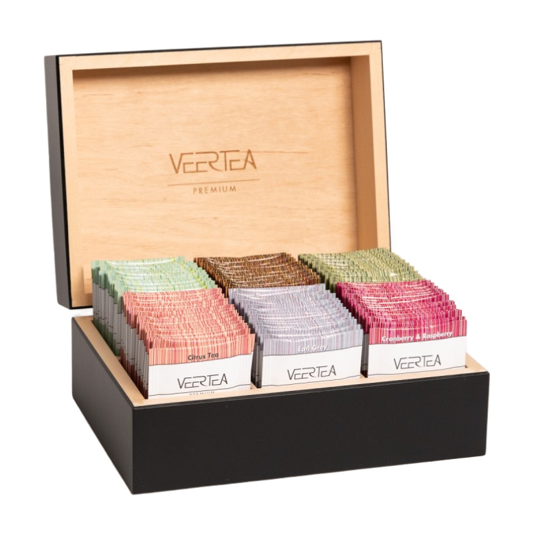 Drewniana skrzynka z herbatami Veertea 96 kopert - Czarna