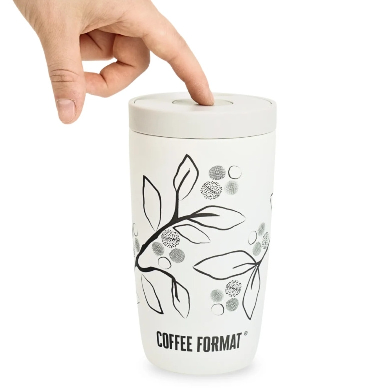 Kubek termiczny Coffee Format 350 ml - Biały z motywem roślin