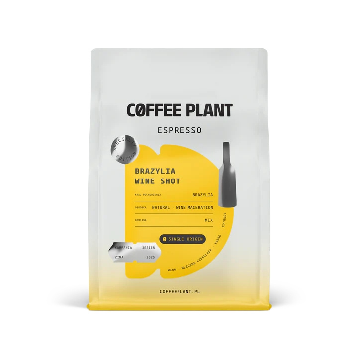 COFFEE PLANT Brazylia Wine Shot to kawa specialty, która zachwyci nas w postaci aromatycznego espresso lub aksamitnego cappuccino.